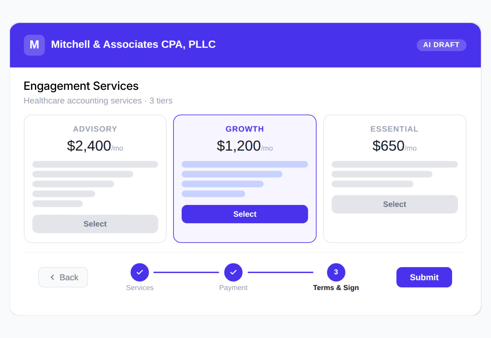 Send a branded, 3-tier proposal with AI price & positioning in under 2 minutes.